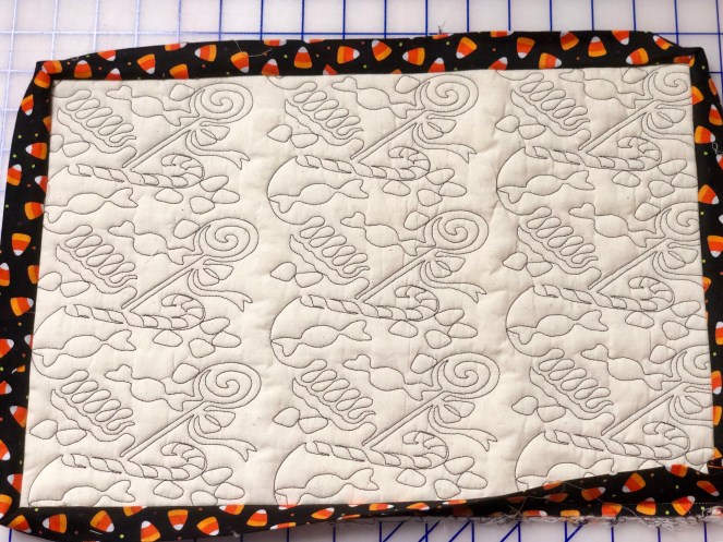 The theme was centered around Halloween, winter and Christmas. The project I chose was a candle mat. A candle mat is like a mini quilt but not intimidating for a non sewing person. It’s a great little project when you are trying to get your friends to sew with you.