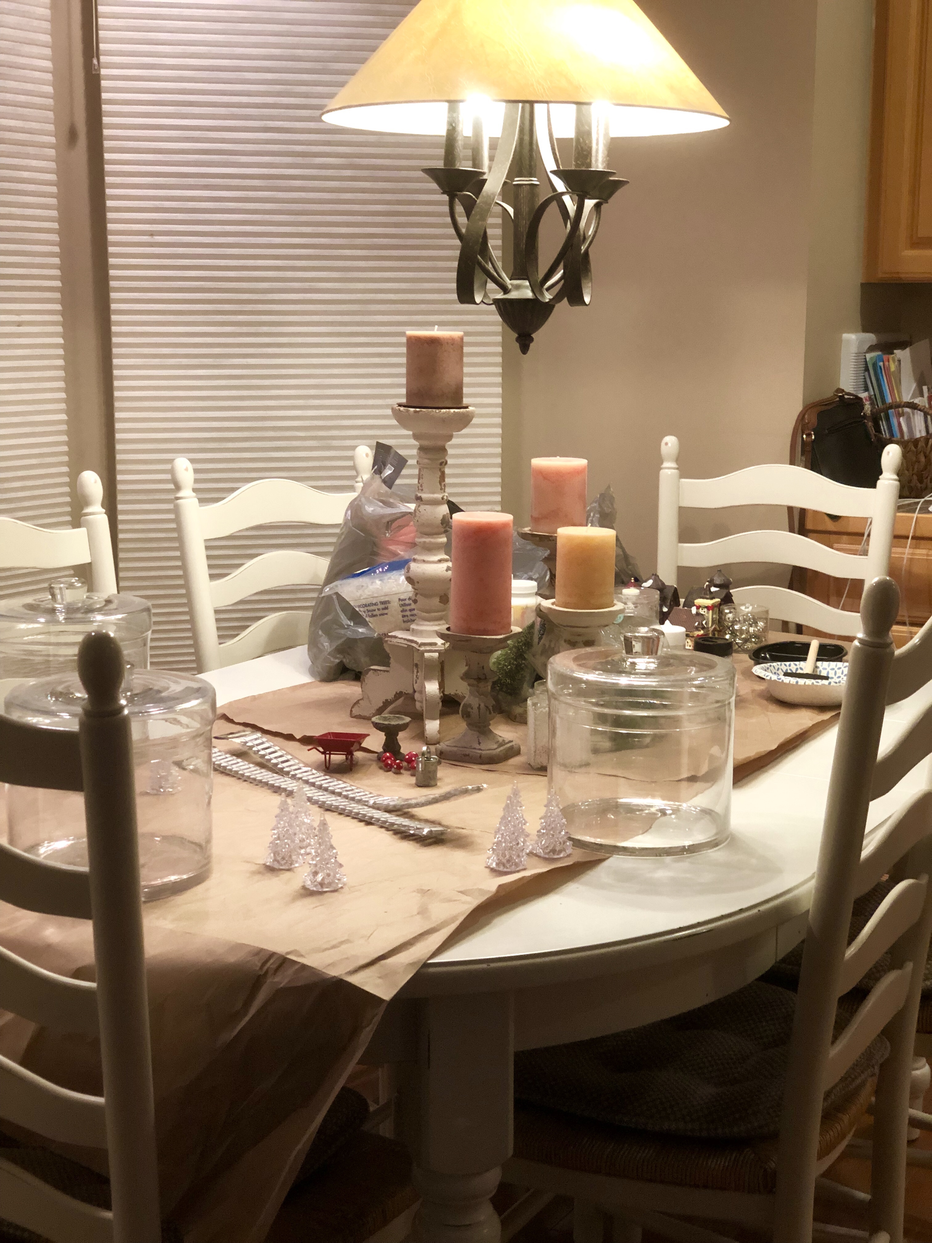 It worked out that I could host another craft night.  That’s two in a row! I invited a couple of friends that I knew would love the idea of setting up a Christmas scene in glass.